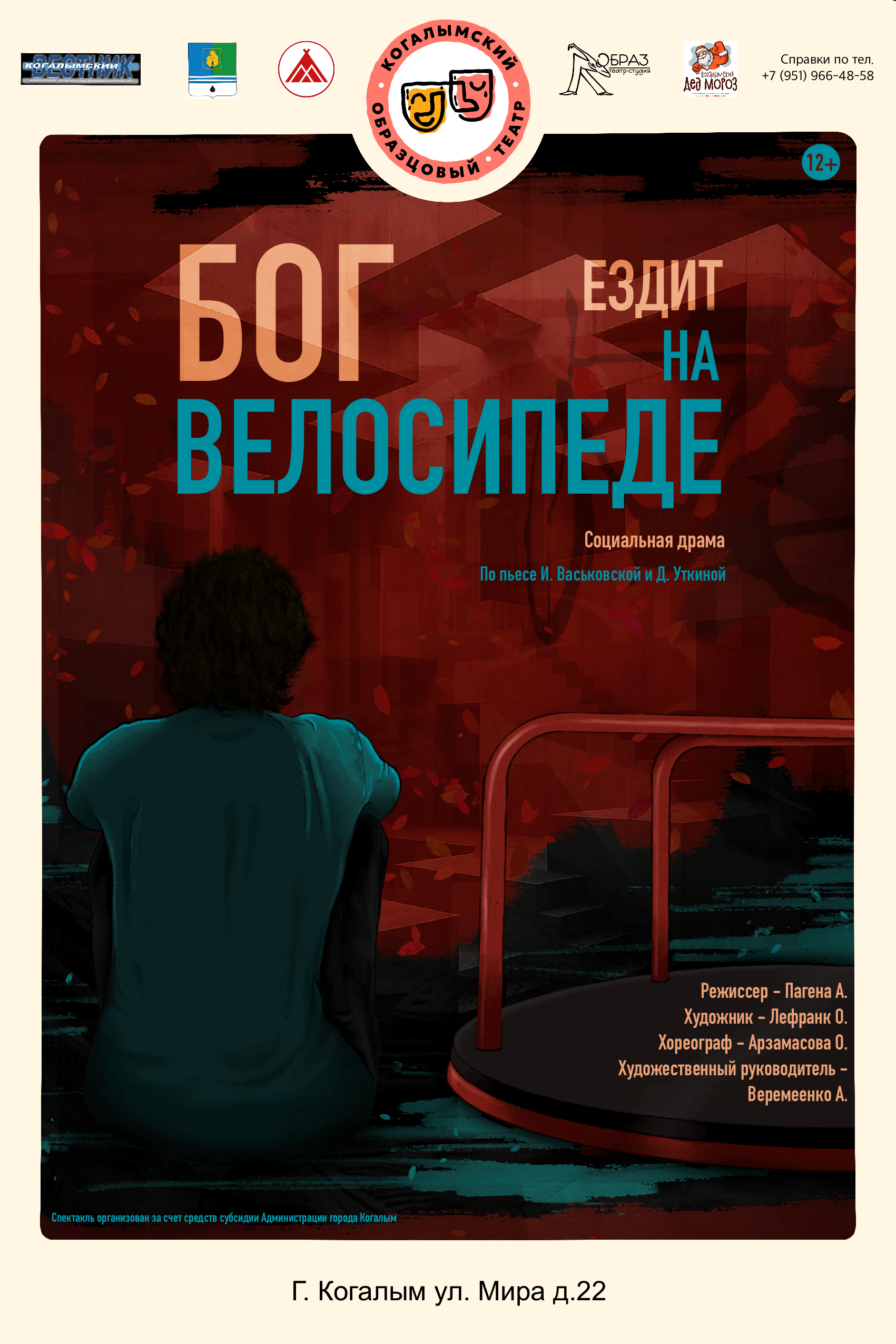 Всех жителей города ждём на спектакле «Бог ездит на велосипеде» 27 марта 2026г. в 17:00 и 19:30 в «Когалымский ОБРАЗцовый ТЕАТР» по ул. Мира д. 22.